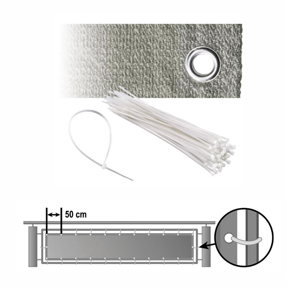 Het balkondoek is rondom voorzien van aluminium zeilogen voor een eenvoudigere montage. Hierdoor is het balkon privacydoek eenvoudig te bevestigen met kabelbinders. Houd er rekening mee dat er kleurafwijkingen kunnen zijn, afhankelijk van de scherminstellingen t.o.v. het origineel.
